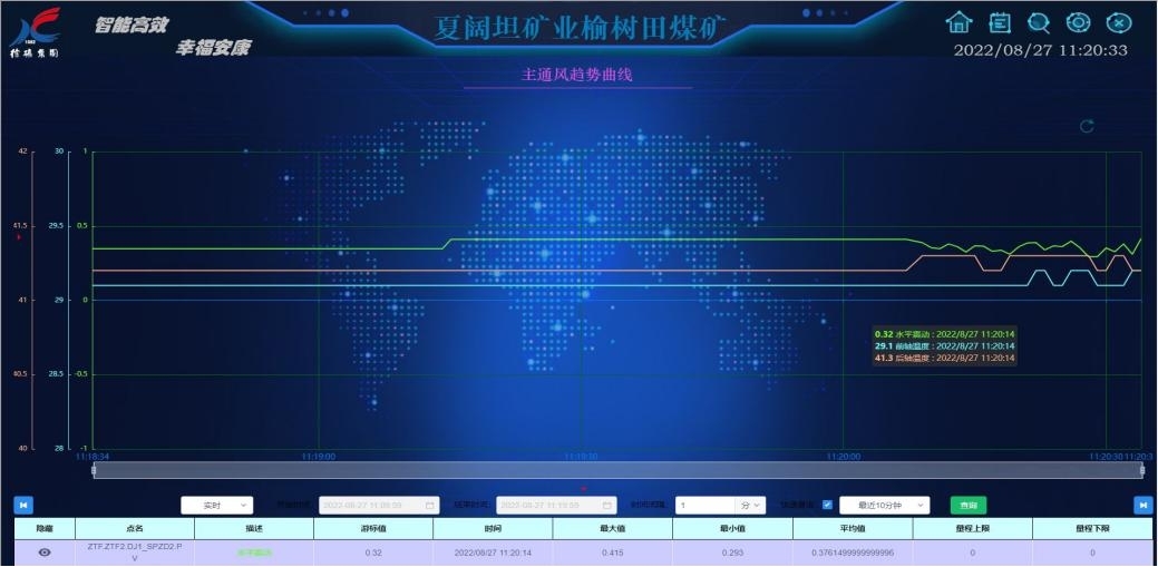 煤礦管控一體化平臺整合煤礦現有的地面通風機監控系統、空壓機監控系統、煤流運輸監控系統、井下中央水泵監控系統、綜采工作面監控系統、電力監控系統等礦井安全生產相關子系統的數據,經整合后數據可直接在煤礦管控一體化平臺中進行實時顯示與報警,以實現對礦井安全生產工況的實時監控與掌握,同時還可將安全生產相關數據存儲在實時歷史數據庫中,建設全礦統一的安全生產綜合數據庫,以實現對全礦安全生產歷史狀況的查詢與分析。