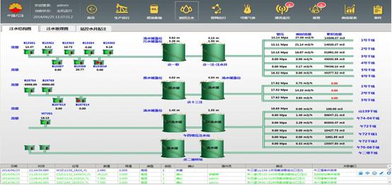 水系統(tǒng)監(jiān)控重點(diǎn)監(jiān)控注水干線、注水閥組、水源井,以總引導(dǎo)界面進(jìn)入不同的注水站、水源井監(jiān)控界面、注水井配注界面。