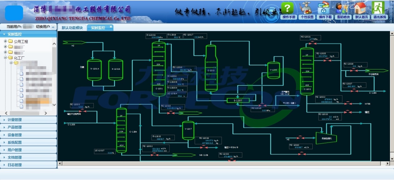 該化工股份有限公司能源計量管理調度系統的建設完成,使得企業的管理人員只需通過IE瀏覽器登陸到信息化平臺,即可查看各個分廠生產裝置的實時數據和能源消耗數據等信息,可第一時間發現現場設備運行故障、能源介質的跑冒滴漏以及目前廠區產品生產情況,及時采取有效措施,保證安全和穩定的生產,對生產現場數據一目了然,為以后的管理考核起到強有力的依據。