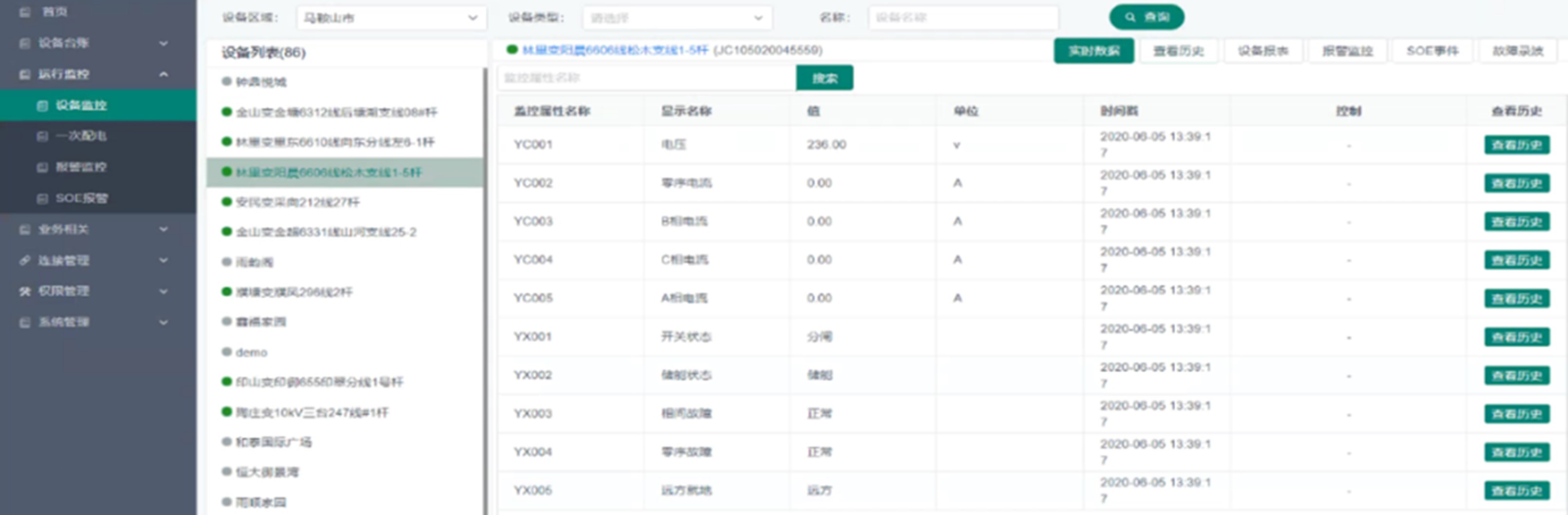 設備數(shù)據(jù)可以實時顯示數(shù)據(jù)、每一條數(shù)據(jù)均帶有名稱、描述、實時值、單位、時間戳。