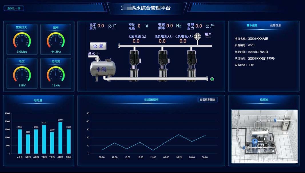 智慧供水泵站系統通過實時監測水壓、流量等數據,并根據用水需求自動調節泵組運行狀態,實現供水的智能化控制,提高供水效率,節能減排。