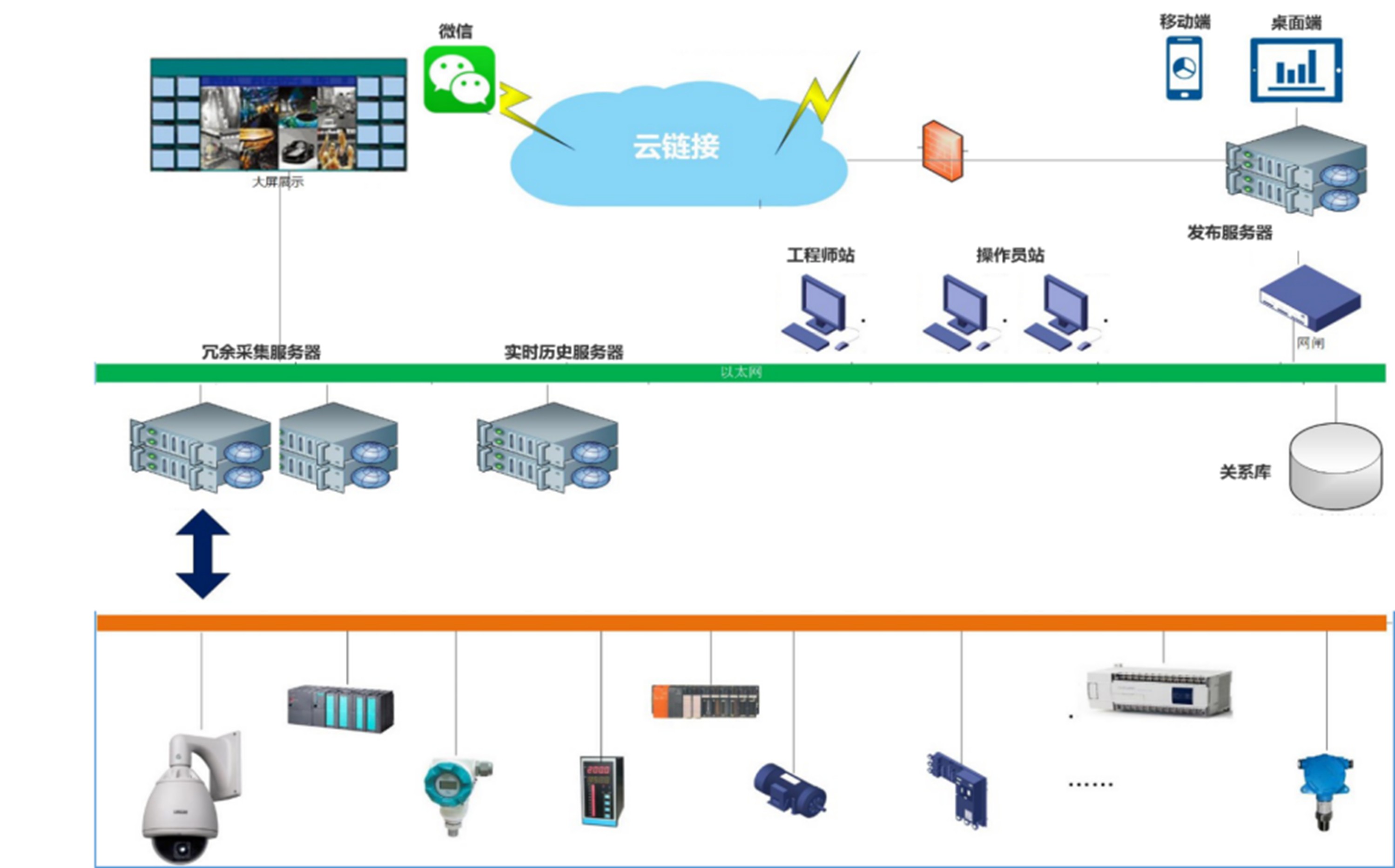 綜合監(jiān)控層基于工業(yè)環(huán)網(wǎng)傳輸數(shù)據(jù),部署SCADA系統(tǒng)與數(shù)據(jù)庫軟件,實(shí)現(xiàn)實(shí)時數(shù)據(jù)計(jì)算、存儲及歷史數(shù)據(jù)分析功能。通過動態(tài)監(jiān)測各子系統(tǒng)安全生產(chǎn)狀態(tài),構(gòu)建可視化監(jiān)控體系,支持調(diào)度中心大屏、子站客戶端及WEB端多方式訪問,為管理人員與技術(shù)團(tuán)隊(duì)提供精準(zhǔn)、直觀的設(shè)備運(yùn)行信息,助力科學(xué)決策與風(fēng)險(xiǎn)預(yù)判。