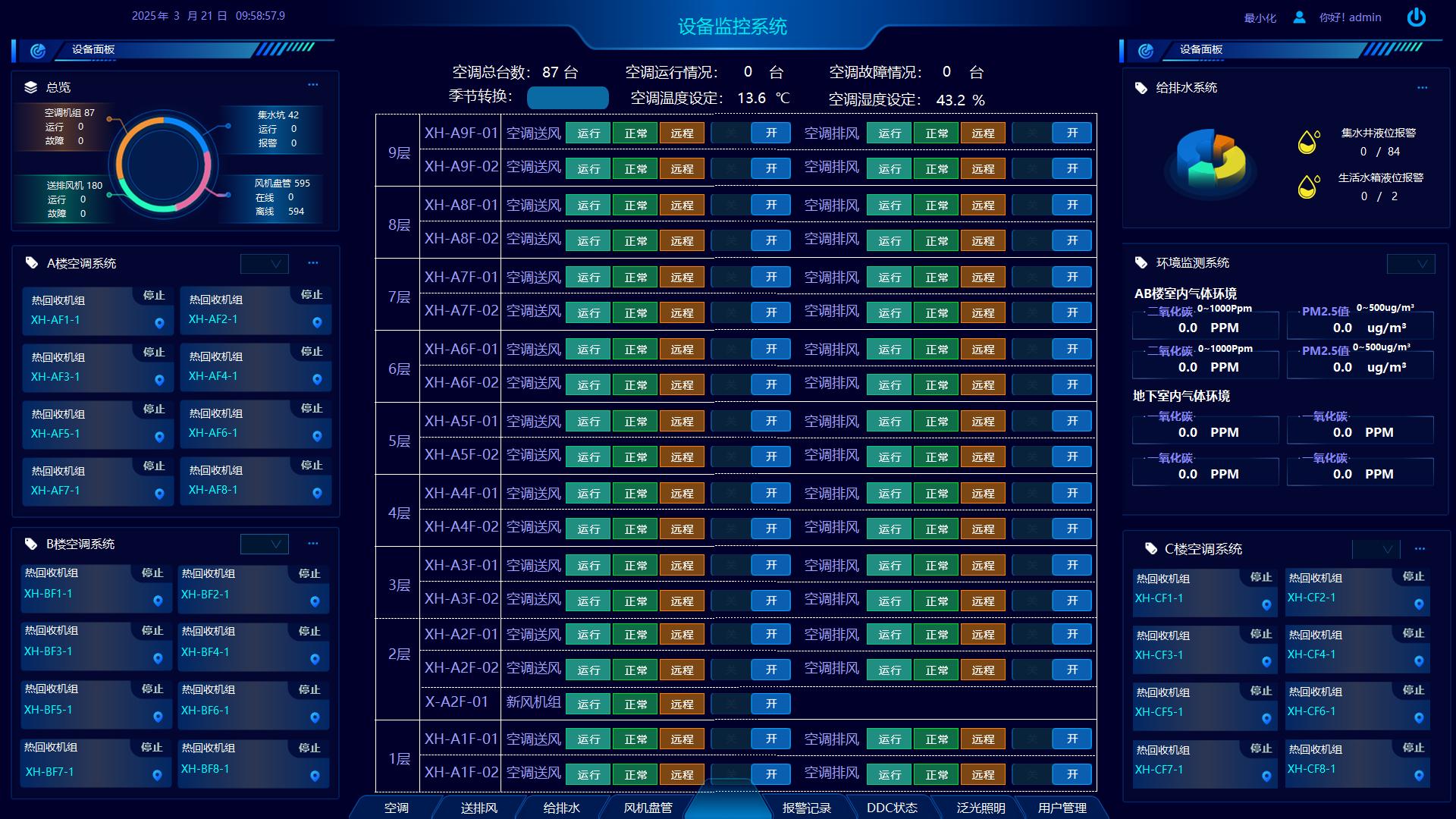 例如,空調(diào)系統(tǒng)監(jiān)控畫面可實時顯示各機(jī)組溫度、濕度、風(fēng)量等參數(shù)的變化,以及機(jī)組啟停狀態(tài),便于管理人員及時掌握設(shè)備運行情況。