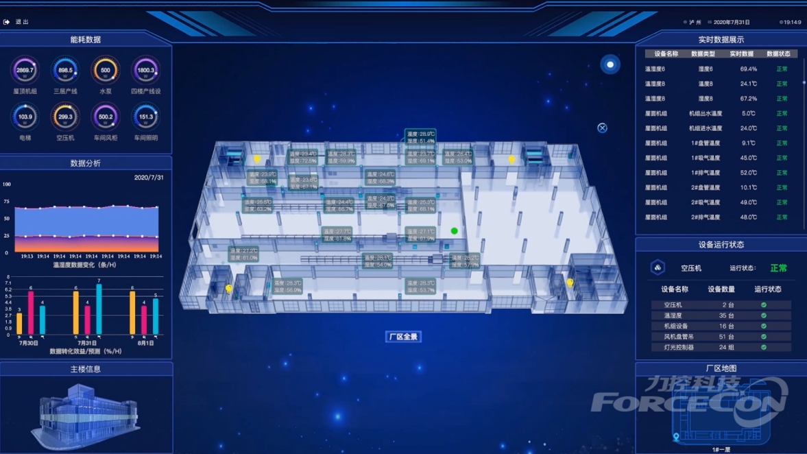 東莞長城采用力控自主研發的產品企業級實時歷史數據庫pSpace、三維可視化平臺FCVP,將其實際存在的工廠成功轉化為數字孿生工廠。