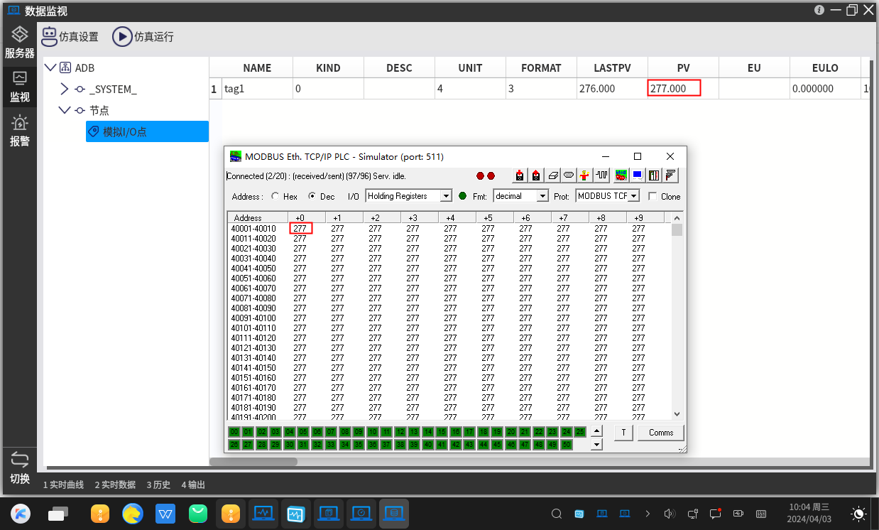 • 配置完成后,可以直接在ForceSCADA數據監視中查看現場設備的實時和歷史數據。