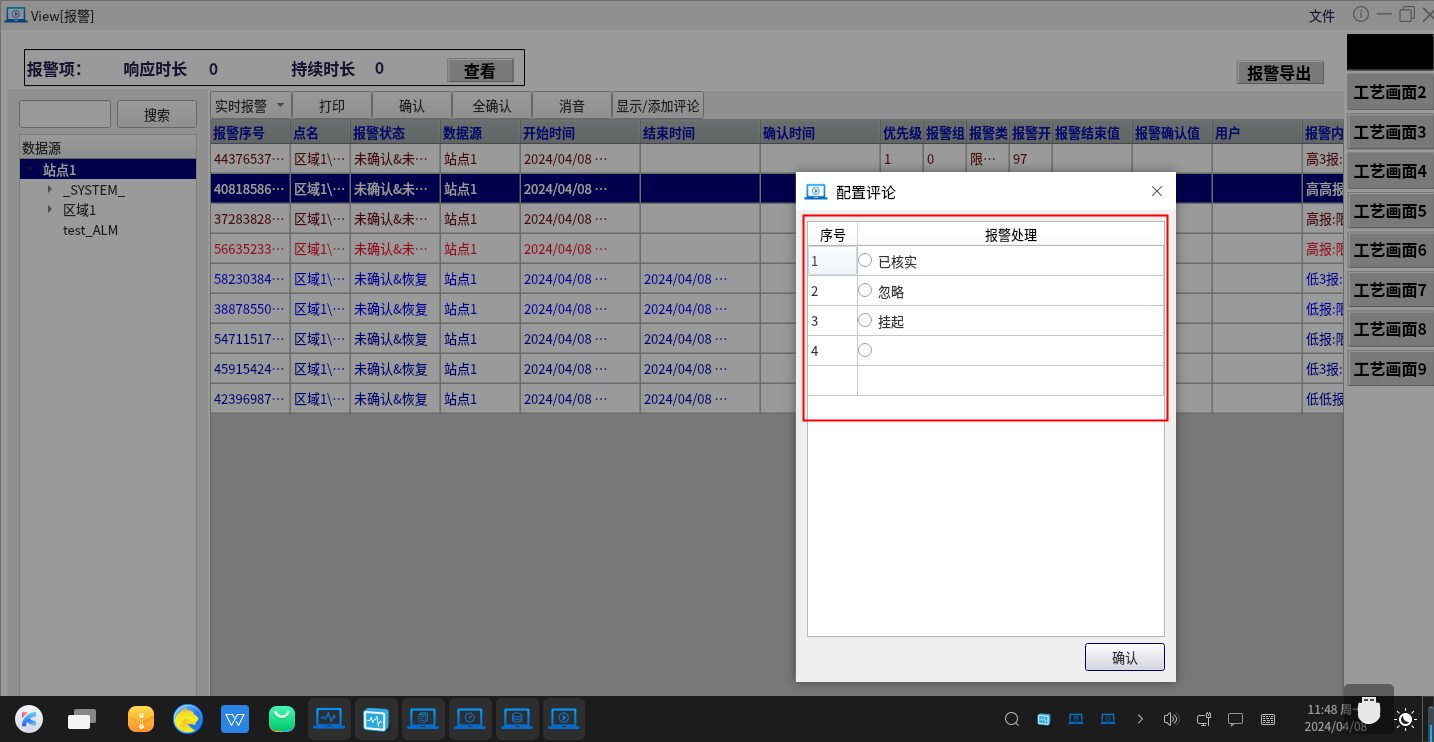 報警處理,根據報警信息字段內容,依據工藝設備情況,報警處理時做評論標注,便于問題或原因追蹤。