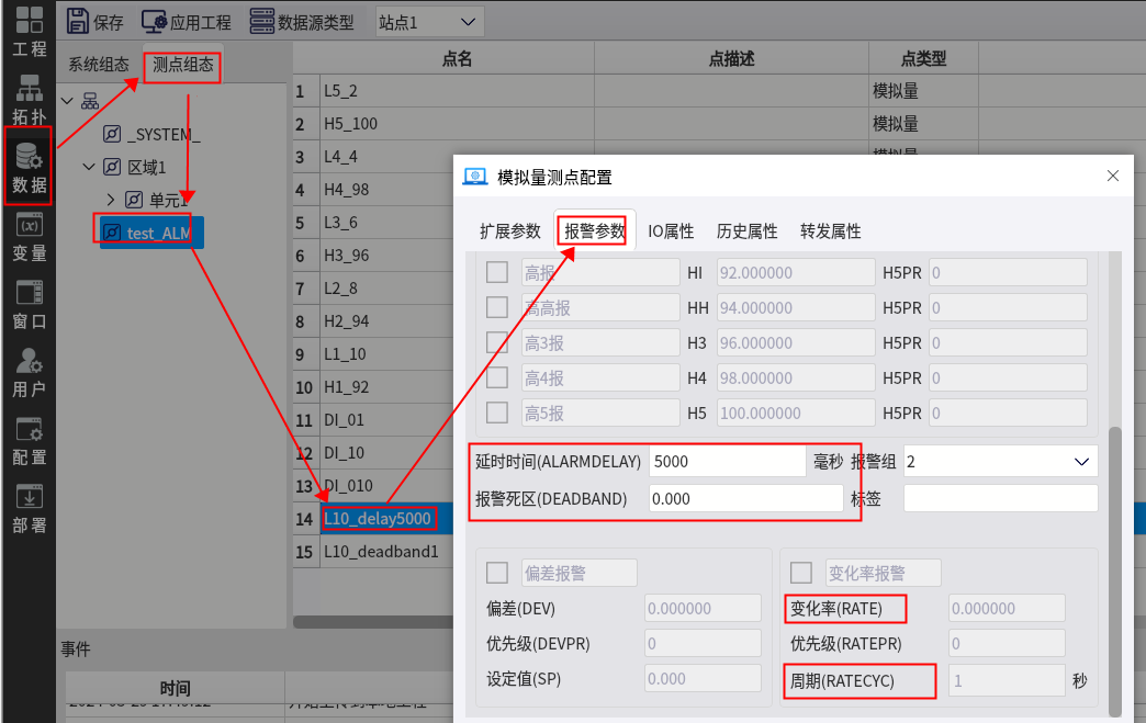 報警滋擾、誤報情況,ForceSCADA在報警參數中設立,延時報警、死區報警以及變化率,做不同工藝報警觸發動作約束限制,提高報警準確率和精確度。