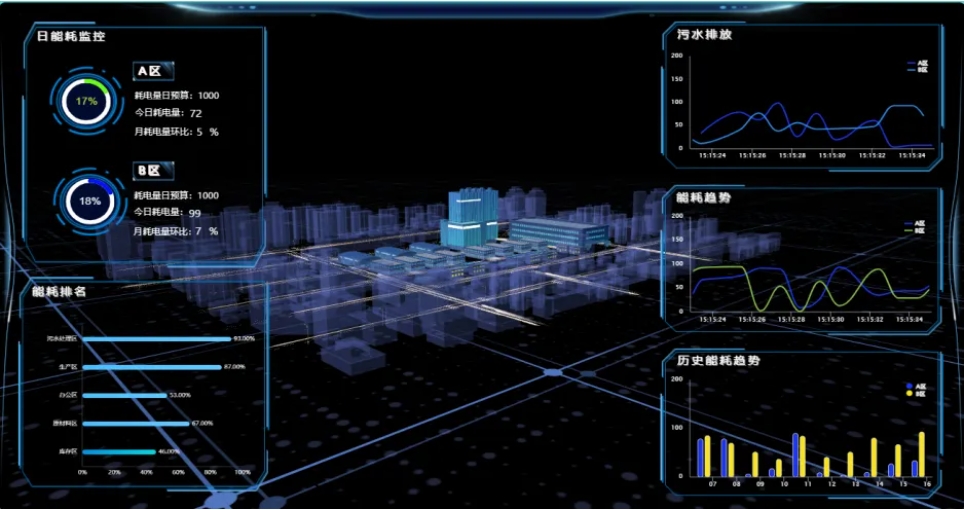 拖拽式組件庫力控FWebSCADA方便加載各種矢量模型,提供多種折線圖、多折柱狀圖、多種餅圖、雷達圖、玫瑰圖、地圖等工業級分析工具,自由組合多維度數據看板。