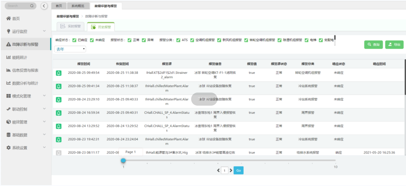 故障與報(bào)警功能,實(shí)時(shí)監(jiān)測(cè)設(shè)備運(yùn)行數(shù)據(jù)、能源數(shù)據(jù),將其作為設(shè)備運(yùn)行狀況的判斷依據(jù),平臺(tái)的后臺(tái)將收集到的運(yùn)行數(shù)據(jù)進(jìn)行匯總分析。